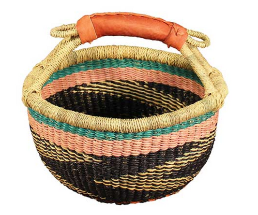 African Market Baskets- G-149AN+- Navy/Natural Mini Round