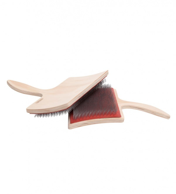Smaller, lightweight carders with comfortable round handle. Used in pairs to card and prepare your fibers in the traditional way, producing small rolags for spinning.
