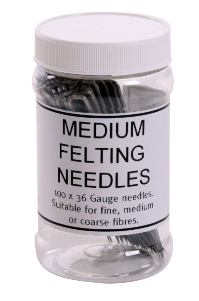 Reverse Barb Felting Needles- 36 gauge needle where the barbs go the opposite direction which results in fibre being pulled out. This is useful to create a fluffy finish on well felted pieces.