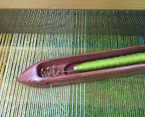 For perfect selvedges and speedy weaving, many weavers prefer end-feed boat shuttles. These boat shuttles use special end-feed bobbins called pirns that do not spin. Rather, the yarn is released off the end of the stationary pirn, through a tensioning device and then out the side of the shuttle.