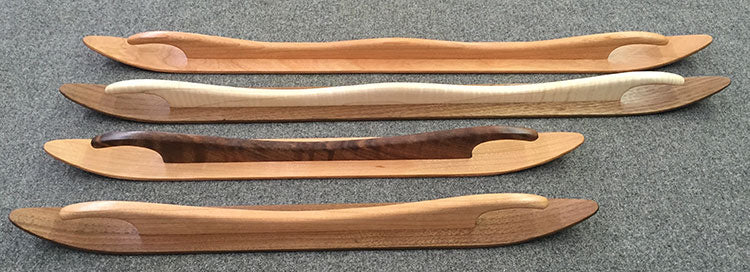 Very few woods can be steam-bent with consistent results. Of the woods we typically stock, only cherry, walnut, maple and ash exhibit excellent steam-bending characteristics, and therefore, the runners of our ski shuttles are made only in these four woods. The center cleat of the ski shuttle may be made from any wood we have available.