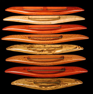 Bluster Bay Swedish-style boat shuttles were designed after years of examining and weaving with traditional Swedish-made shuttles. We worked with weavers in Scandinavia, and others who enjoy Swedish weaving techniques, making sure our designs have all the features necessary for exceptional Swedish-style shuttles. All sizes have elegant ends designed to slip effortlessly through a very small shed, minimizing mispicks.