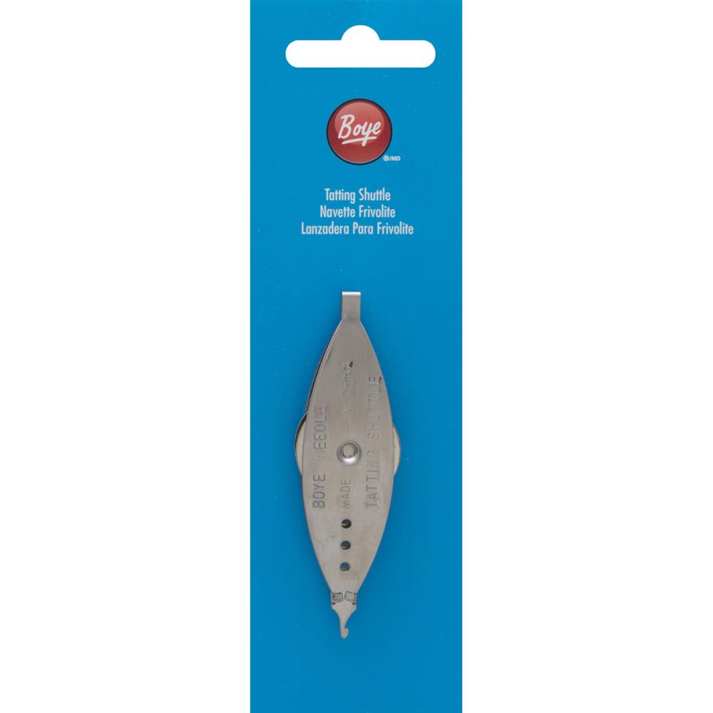 BOYE-Tatting Shuttle. This package contains one metal tatting shuttle. It features a removable bobbin and measures 2-3/4x7/8x1/4 inch.