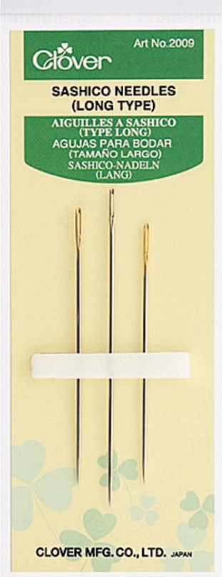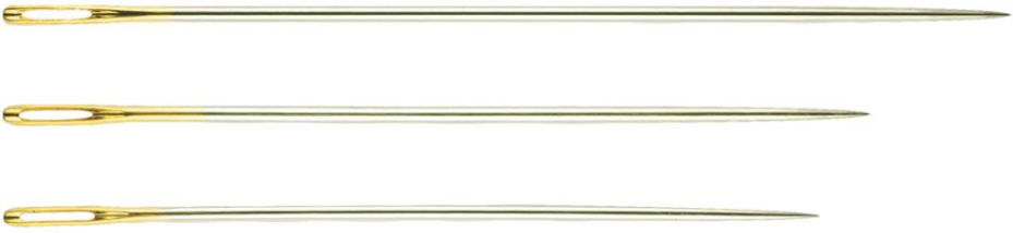 These long Sashico Needles have a sharp tip which allows for a smooth insertion into fabric. This package contains three steel needles that range in length from 2-1/4 to 2-3/4 inches.
