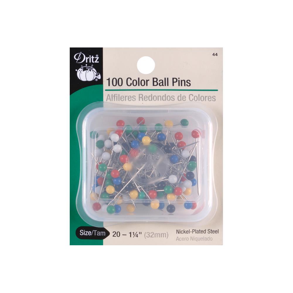 DRITZ-Nickel-plated steel pins with plastic colorball heads for easy penetration into fabric. Use for sewing, quilting, and crafts. Size 20. 100 per package.