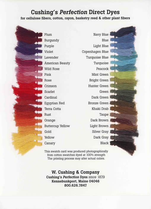 W. Cushing & Company has been manufacturing and selling Cushing's dyes since 1879.