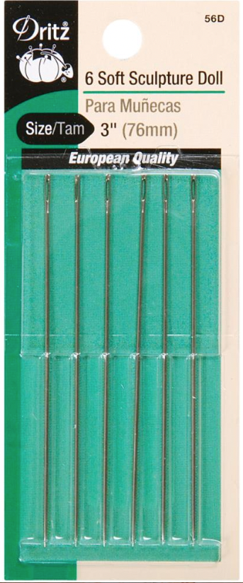 This package contains six long needles with long eyes for doll-making, soft sculpture, upholstery and other crafts. Needles are three inches long. Imported.