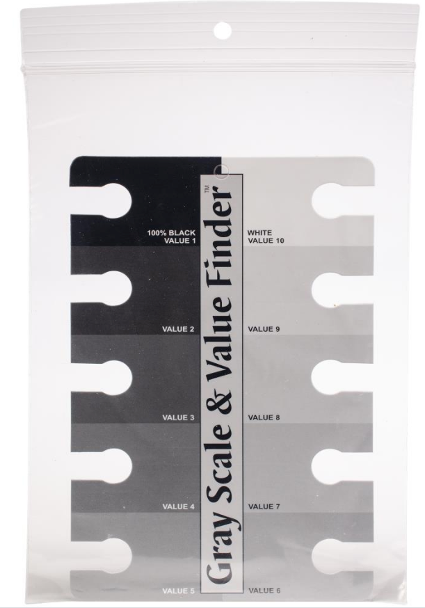 Easy to use and understand, this tool is perfect for determining color value in all media. This package contains one 4x6 inch gray scale & value finder.