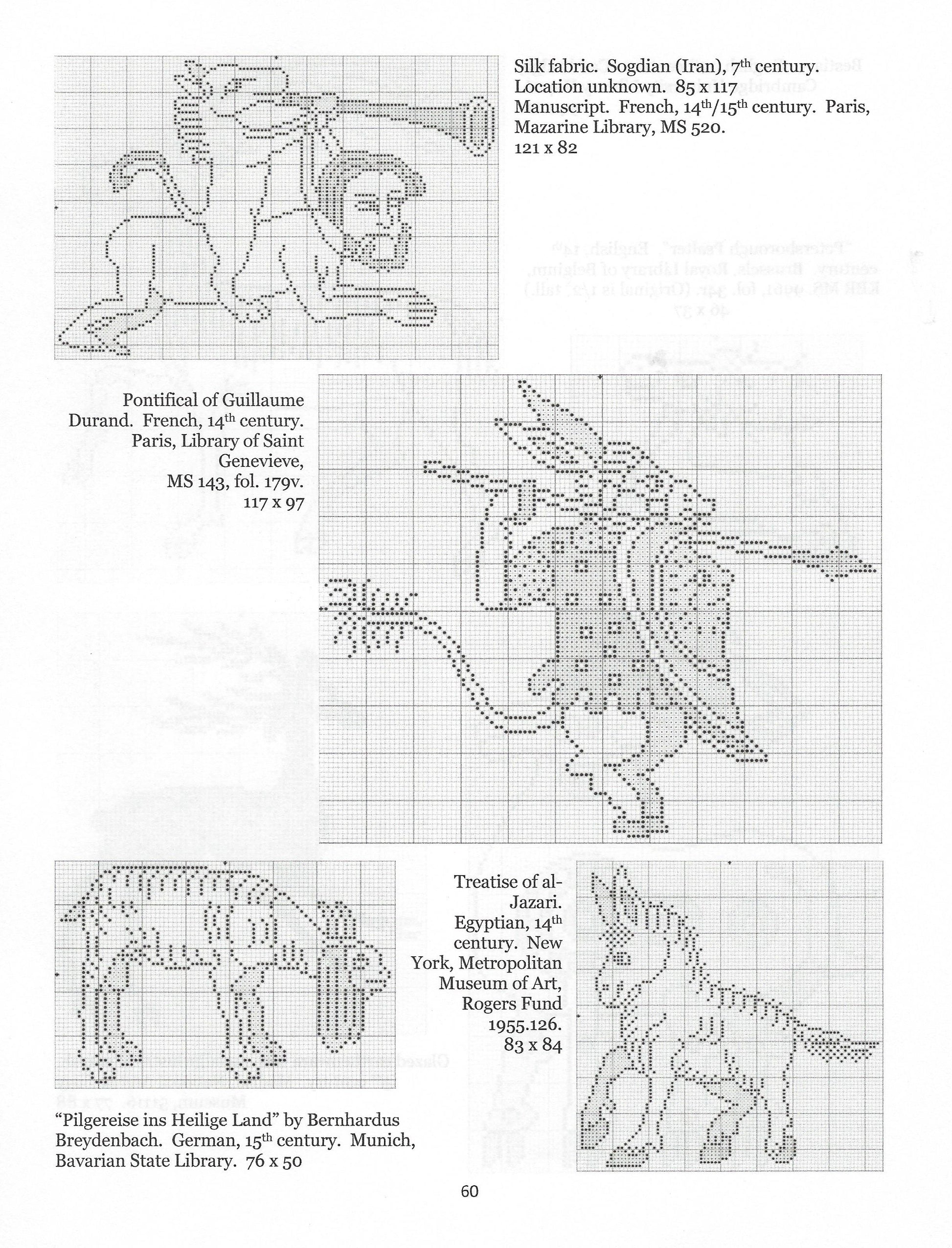 With 469 separate designs, this is the third in a series of books with black-and-white patterns graphed from a large variety of medieval and Renaissance designs. They are divided into ten sections: Alphabets, Angels, Animals, Birds, Borders, Fantasy, Odds & Ends, People, Plants, and Water Beasts.
