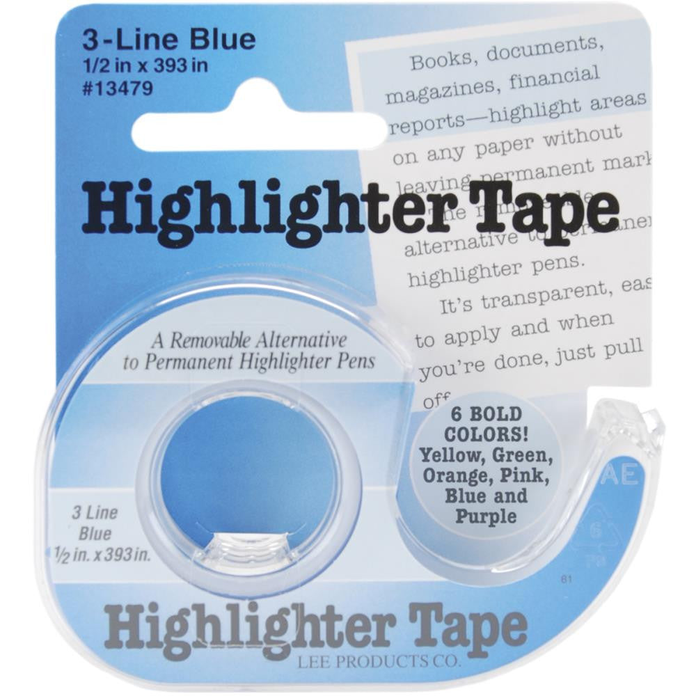 Highlighter Tape. Available in all the popular highlighter colors this tape we revolutionize the way we take notes! Tape is reposition-able on most papers (test before use) making it perfect for school books, library books, reference books and much more! Tape comes on a plastic disposable tape dispenser and measures 1/2x393 inches (tape covers up to three lines of print in most books). Made in USA.