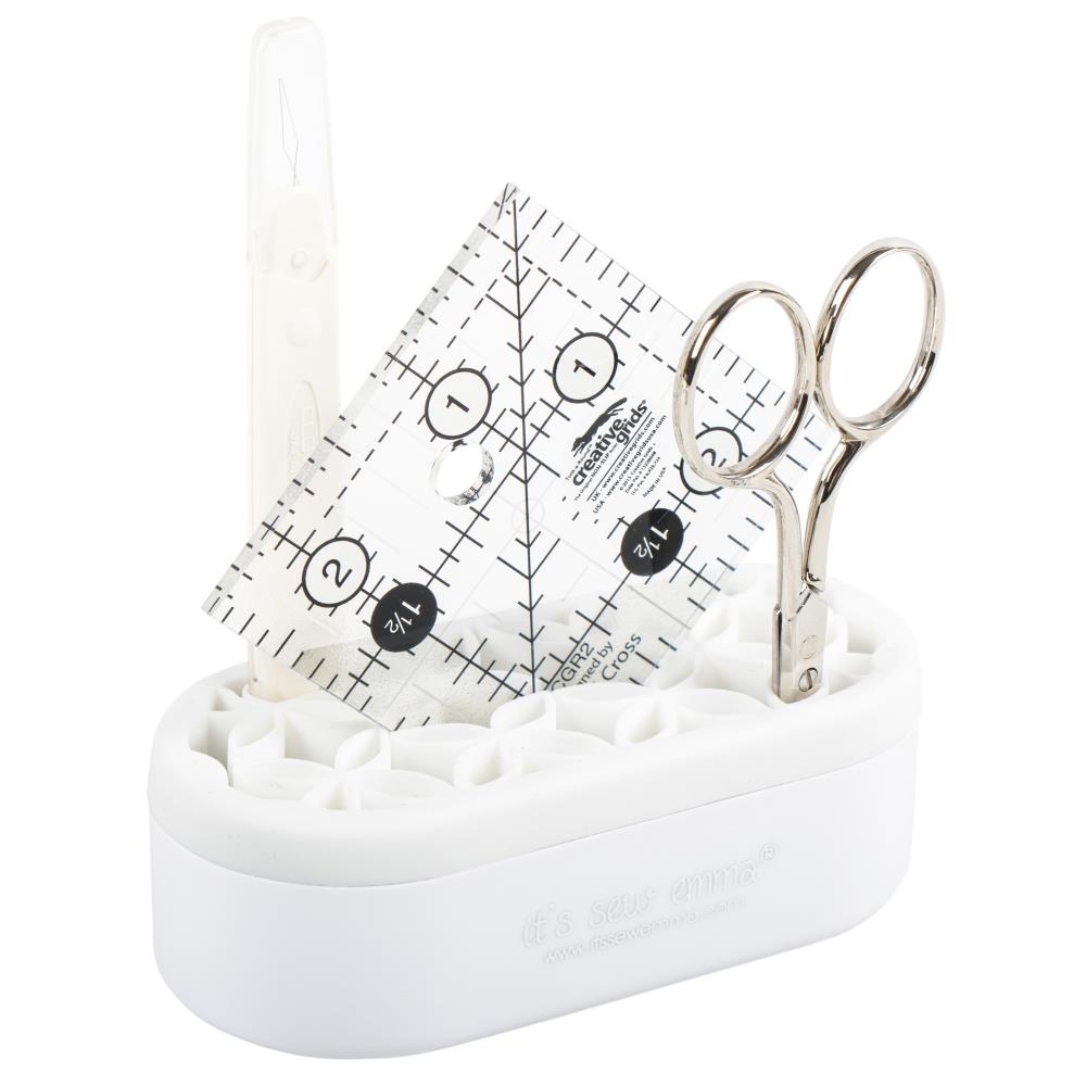 The Mini Stash n Store is the perfect organizer for even the tightest and smallest of spaces. With multiple pockets and center divider,easily stow away notions, marking tools and even small scissors and rulers. The silicone pockets are smooth and offer a sturdy grip and it is also simple to clean.