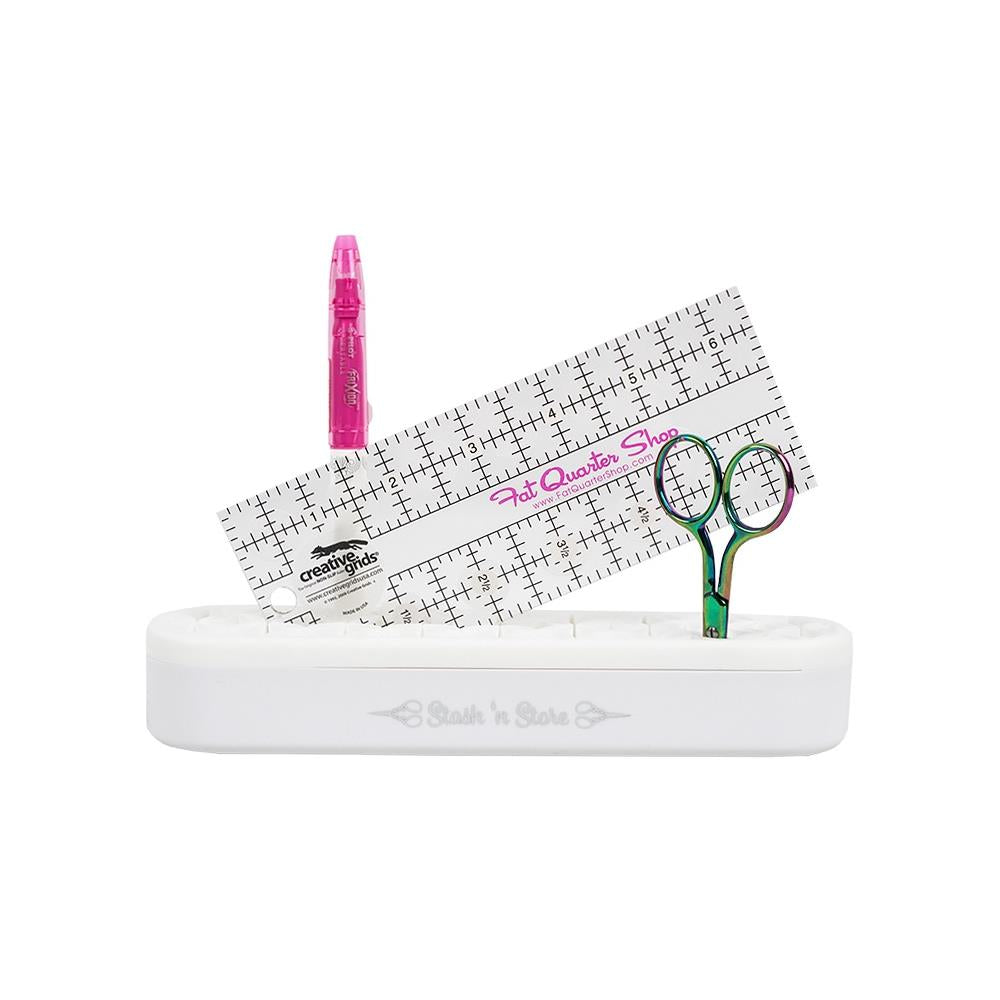 The new Stash n Store is the perfect device to keep your notions within arms reach and ready to go! Easily store scissors, t-pins, rulers, even brushes and small rotary cutters, in an easy-to-grab upright position. The silicone pockets are smooth and offer a sturdy grip and it is also simple to clean.