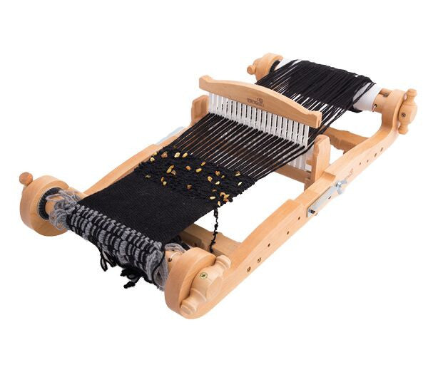 The Harp Forte is available in warping widths of 8, 16, 24 and 32 inches. Two of the more prominent features of the Harp Forte are the improved, innovative metal ratchet and pawl mechanisms, featuring rare earth magnets that grant durable project tensioning and the side-lock latches that allow for convenient portability of your Harp Forte (even mid-project!!). A built-in warping board is located on the back of the loom and a direct warping peg and clamp is included, as well, giving the weaver the choice of warping method without having to invest in additional equipment. The Harp Forte comes with table clamps or can easily be converted to a free-standing loom by mounting it to a stand (sold separately). When you decide to invest in this beautiful rigid heddle loom, you will receive everything you need to begin weaving in one package!! Along with the items already mentioned, a standard 8dpi heddle, 2 stick shuttles, one pickup stick, pegs for the built-in warping board and a threading hook are included with the Harp Forte.