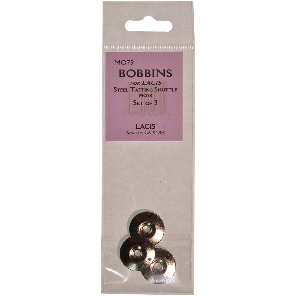 Lacis-Tatting Bobbin. For use with the MO78 Lacis steel shuttle. This package contains three 7/8 inch steel bobbins.l