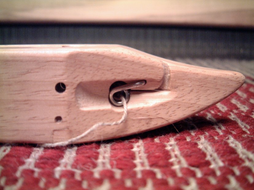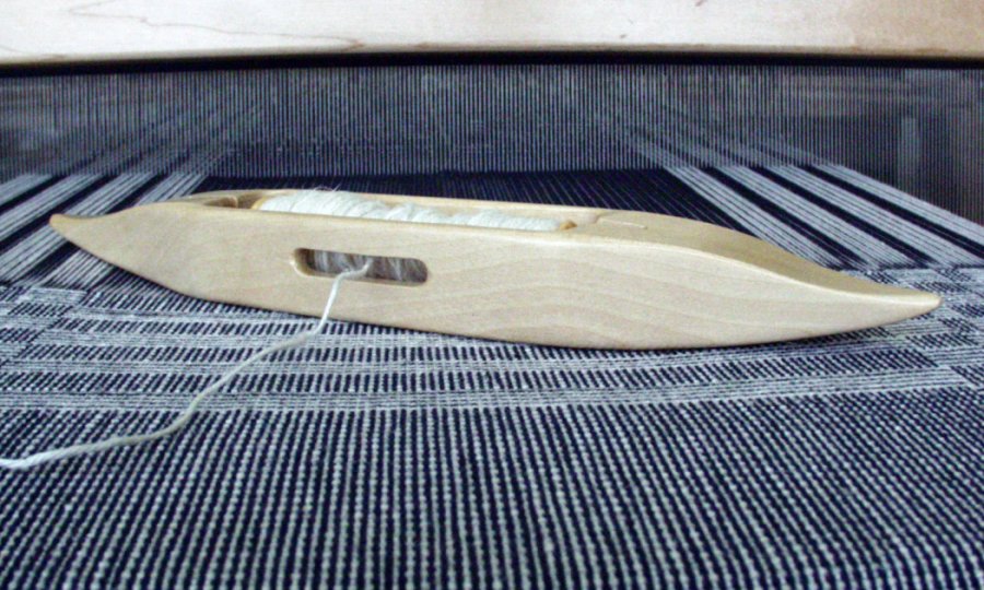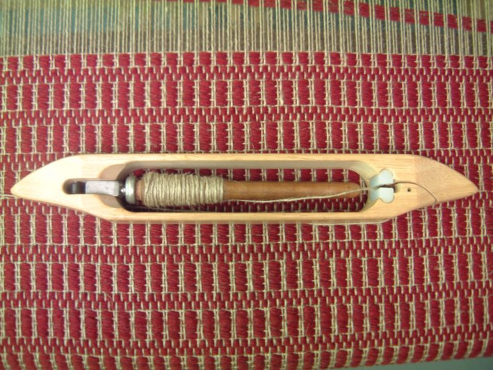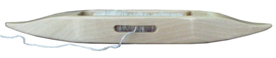 - Shuttle holding two bobbins to weave 2 threads at the same time: 13 5/8" (34 cm) long, need 4" (10 cm) bobbin