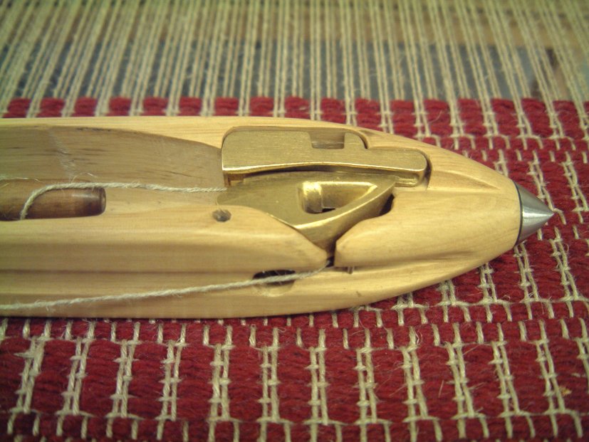- SLIM Boat Shuttle with one styrene bobbin (open buttom) 1" x 1¾" x 11" (2,5 cm x 4,3 cm x 28 cm)