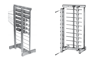 Needed when warping with yarn on tubes, this thread guide prevents the yarn from slipping off the end of the bobbin by always pulling from the center. It has 2 thread guides, each having 20 thread eyes.