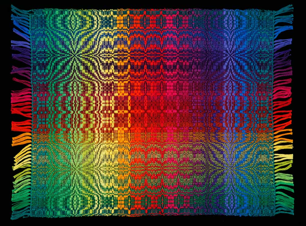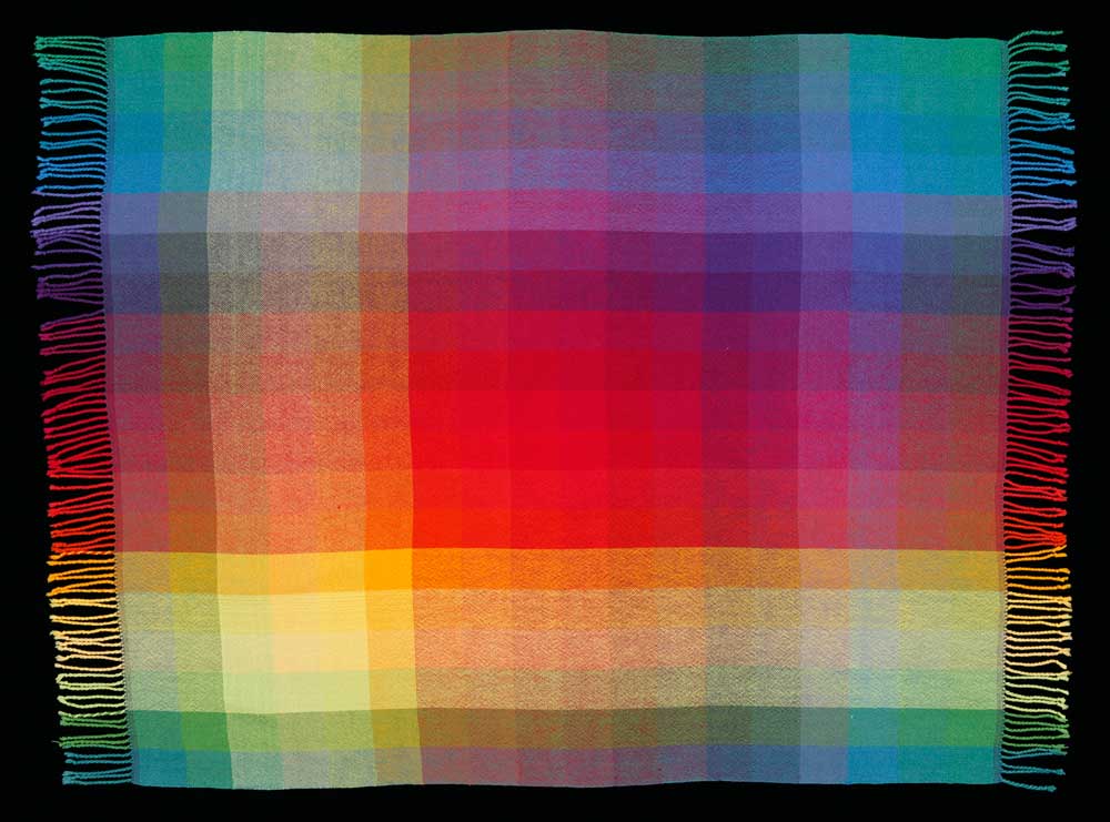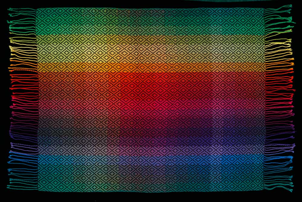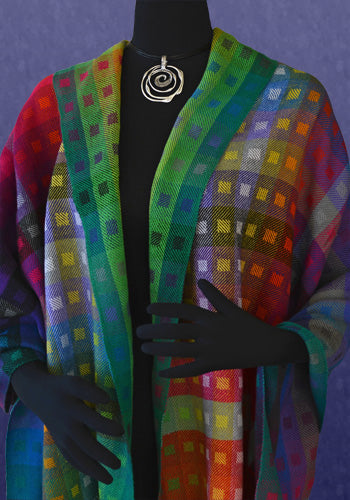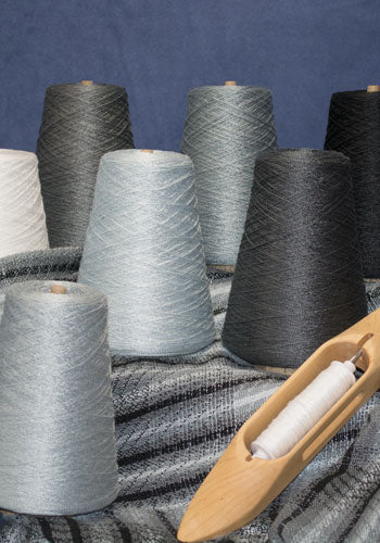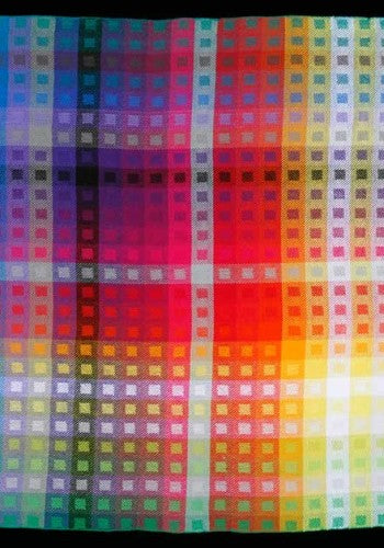Add value to your color exploration. 27 cones of color: 5 shades of gray, all 20 Tubular Spectrum™ colors, plus black and white make an expanded color and value gamp. The kit with 1.5 oz cones contains enough yarn and instructions to weave a beautiful, colorful shawl as well as a 40″ square gamp. Instructions are included for the 8 harness twill block pattern that makes these colors sing.