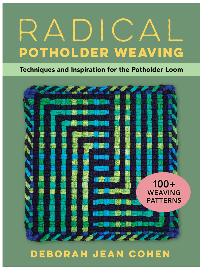 Deborah Jean Cohen began designing potholder weaving patterns when she was disappointed in the number of patterns available and began to convert other weaving patterns to work on her potholder loom. She found that the possibilities were endless, and she soon found others online who were also excited by what you could weave on a small loom. She is the founder and administrator of Radical Potholder Weavers, a dynamic, fast-growing Facebook Group, and she has also given Zoom workshops through The Weaving Way Community. IG @deborahjeancohen and @radicalpotholderweavers