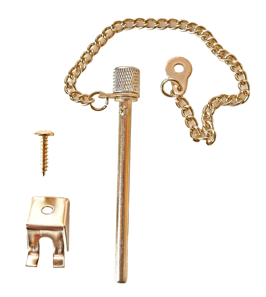 Replaces the beater pin and holder on all Wolf looms and Standard Floor Looms. Kit includes beater pin & chain, holder, and #6 x 5/8" Phillips pan head sheet metal screw.
