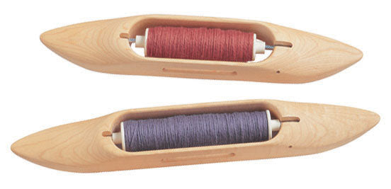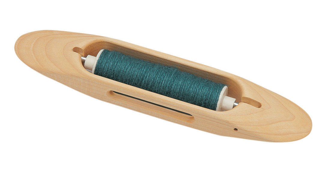 A boat shuttle loaded with a bobbin increases your efficiency. They are excellent for looms with shuttle races such as table looms and floor looms. We offer a variety of sizes and styles. What you choose will depend on what feels comfortable in your hand and they type of weaving you are doing. For example, if you are weaving a heavy weight fabric, you might want to choose a 15” boat shuttle that will hold more yarn. Or, for instance, if you are weaving a very narrow piece, then you might find a smaller shuttle, such as a 9” mini boat the best choice for