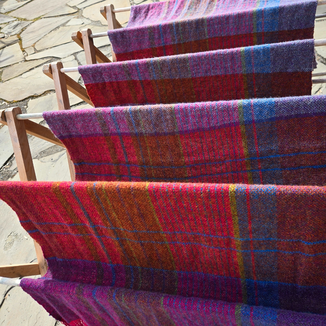 Once a design is committed to, students will warp their looms. With tips given to help the warping process, Sara will highlight some considerations unique to the Shetland wool.
