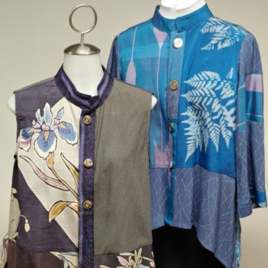 Students should come with their collection of fabric treasures, a few coordinating fabrics that they would like to use and a pattern or two that they like. Instructor can suggest patterns that work well for this technique. In class, students create a with a plan on how to combine their fabrics and a blueprint for ‘what goes where’ and will begin cutting and sewing their new cloth for their chosen garment.