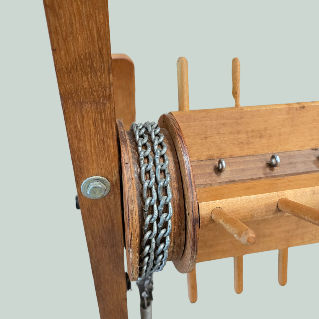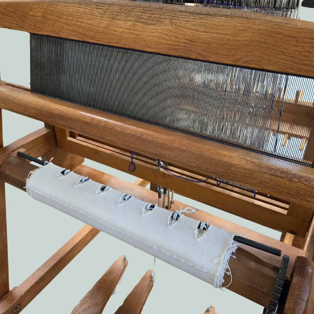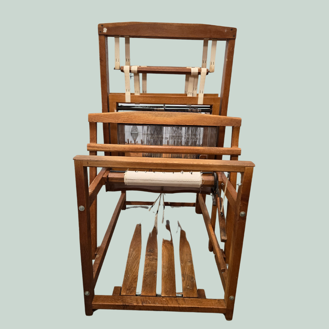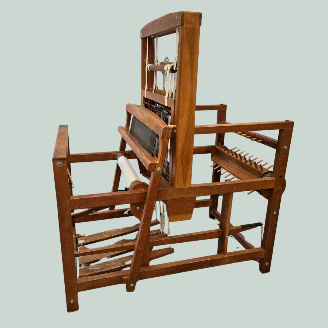 The "offical Beginning Weave looms", used by hundreds of new weavers at the Mannings Handweaving School. This solid, easy to use loom is perfect for any new weaver looking for simplicity. Strong enough to weave rugs with its' rigid back beam, can accommodate very long warps with its' section back beam and easy to treadle with large, direct tie-up treadles. New inserted eye heddles make for easy threading and a confirmed good working break assembly. This may be a first loom for someone, or a solid new addition to your flock of looms.