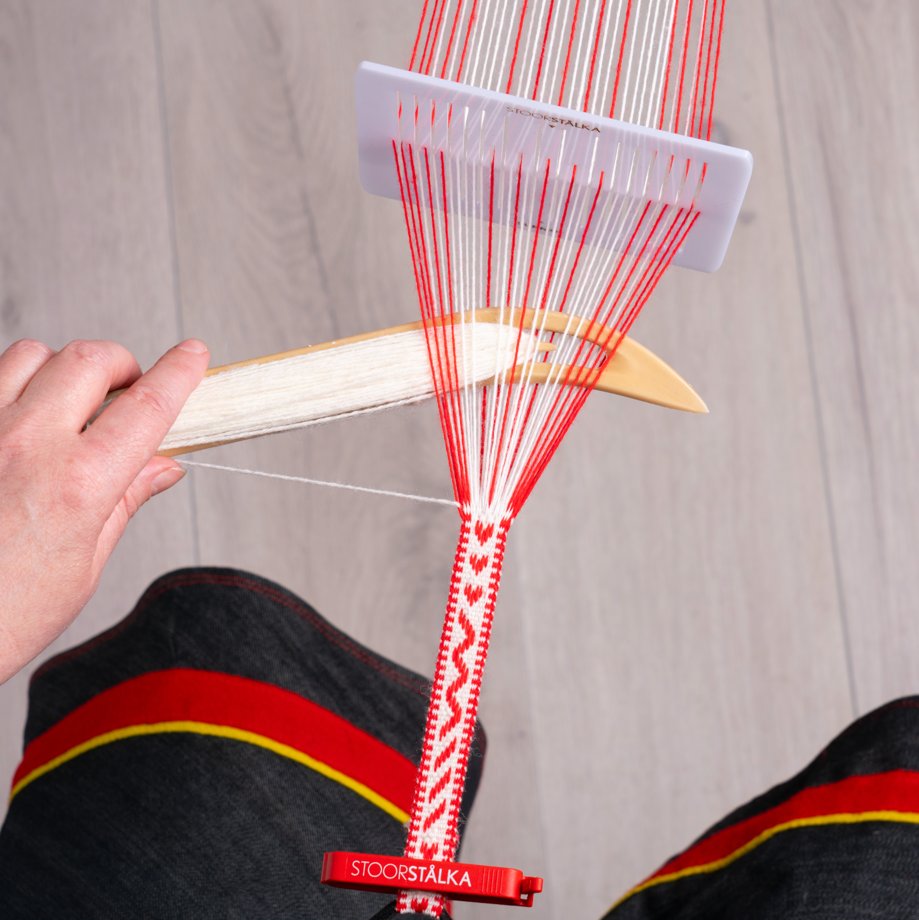 A complete kit for you who wants to try band weaving with pattern picking. Our smallest pattern picking heddle, Sunna 5 is included in the kit. It has five slots for pattern threads and make picking patterns very easy.